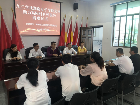 捐赠仪式后,召开了乡村振兴工作座谈会。九三学社湖南省委会老龄委副主任龚德贵表示,支社将持续关注高阳村发展,并结合九三学社自身优势,探索服务乡村新路径,以更有力举措为乡村振兴提供有力支撑。九三学社华亿体育(中国)官方网站支社副主委、湖南光之力信息技术有限公司董事长李发军介绍了支社有关社会服务、乡村振兴等方面的经验做法。支社社员蒋晓丽、池青表示将对接更多社会资源支持乡村振兴工作。