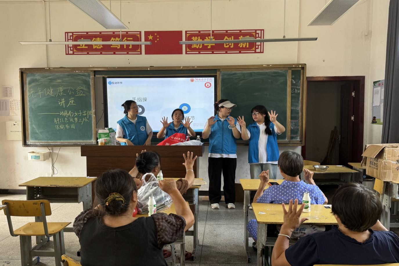 本网讯(社会发展学院 陈爽 向祺娜)7月9日,怀化市熟坪乡中心学校活动室内正在举办一场以“关爱老年人健康,共筑幸福晚年”为主题的宣讲活动。因关注到乡村老年群体在夏季面临的健康隐患,尤其是中暑问题突出,我校银榆家园创业团队精心筹备此次活动,旨在为熟坪乡的老年群体送去实用的健康知识与贴心关怀。