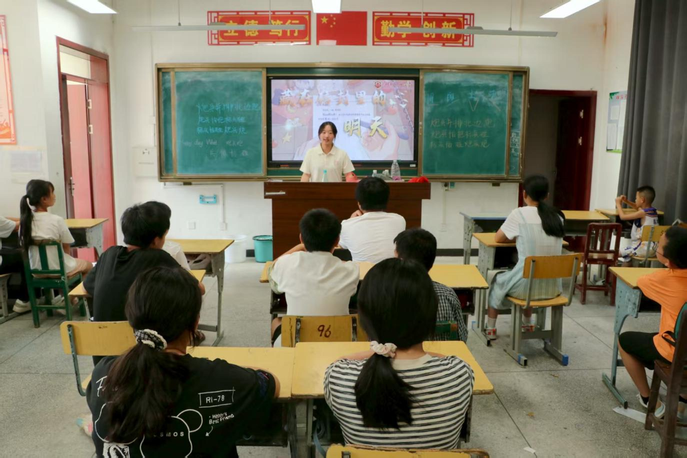 本网讯(校团委 黄嘉淇 王宇晨)7月13日,熟坪乡中心学校的校园里洋溢着别样的温暖。我校“母亲赋能 乡村振兴”实践团在此举办了“藏在信封里的明天”书信课程暨童心陪伴结课仪式,为七十余名乡村儿童送上了一份充满仪式感与未来期许的夏日礼物。