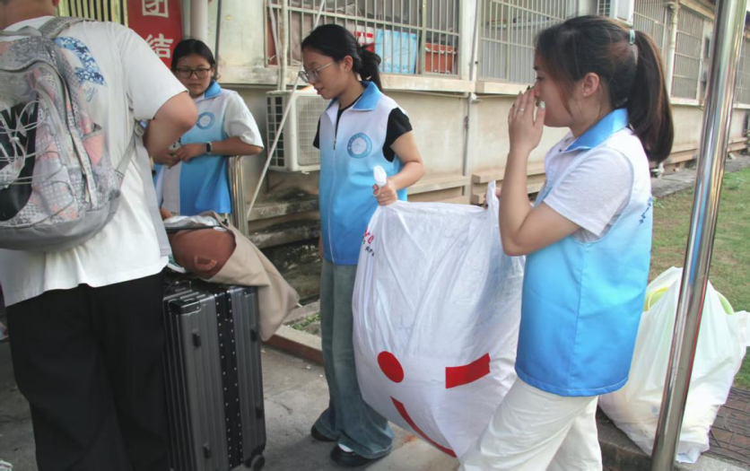 为护航新生顺利入学,旅游与航空管理学院精心谋划,提前做好迎新志愿者的选派和培训工作,构建立体化迎新服务体系。党员与入党积极分子主动化身“护航员”,推行“一对一”帮扶模式:从校门口接过沉甸甸的行李,到耐心讲解报到流程,再到细致解答各类疑问,全程贴心陪伴。宿舍区的志愿者们更是热情满满,拎着行李箱穿梭在楼梯间,汗水浸湿了衣衫,脸上却始终挂着真诚的笑容,用行动传递着家人般的温暖。志愿者们表示,他们也曾经是被迎接的新生,今天作为学长学姐迎接新生,这是一种“旅航”精神的传承。