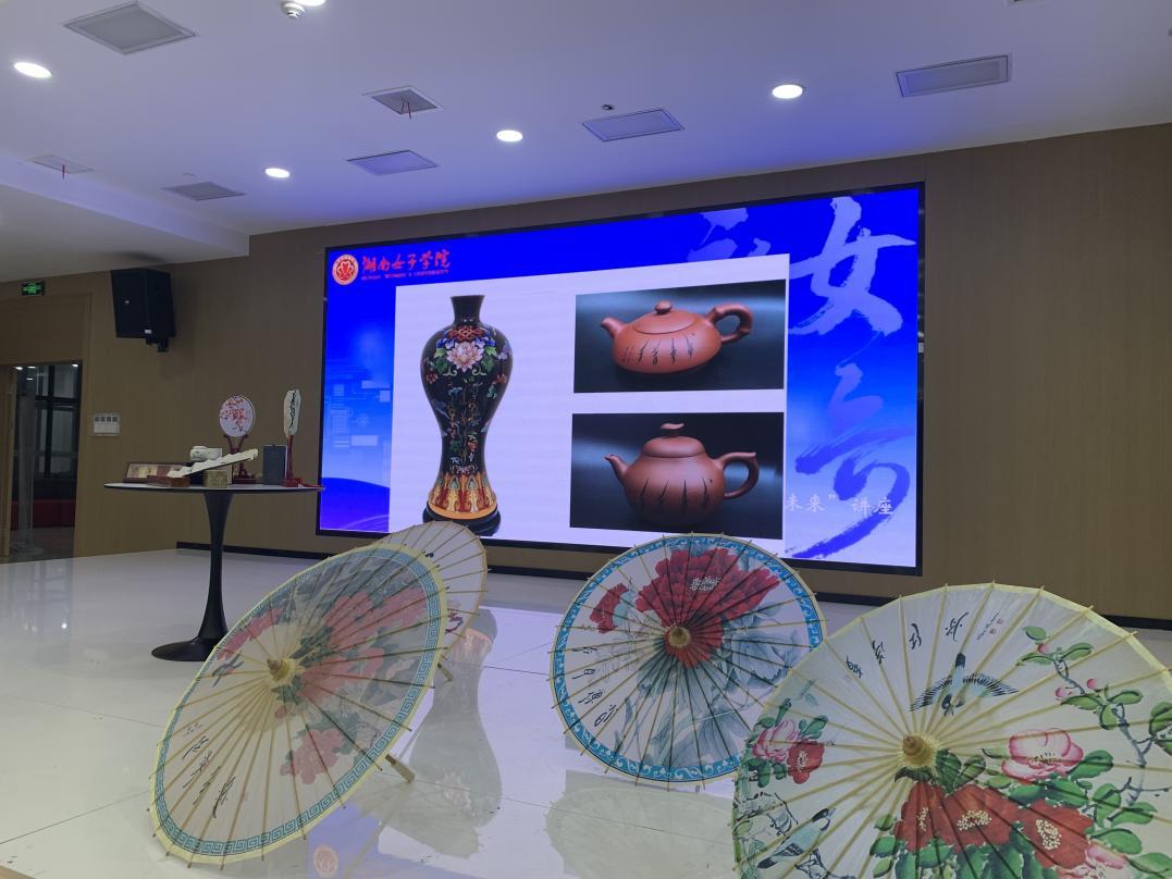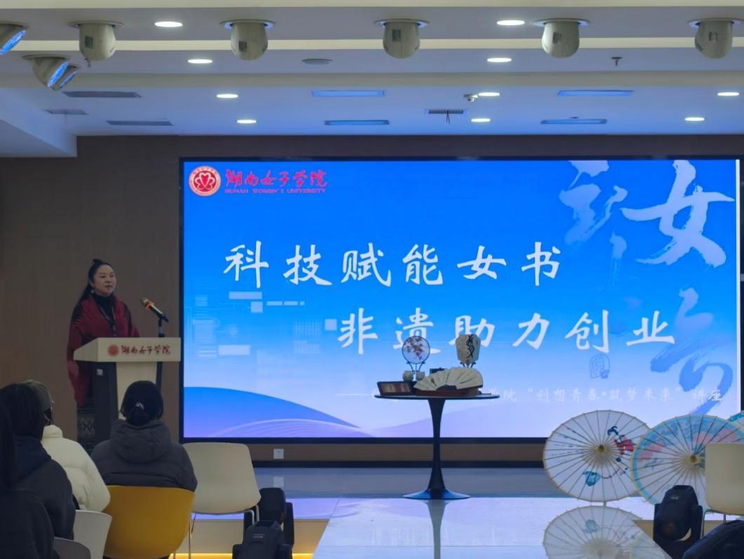 身着融入女书元素服饰的陈立新大使,以生动的方式讲述了作为世界非物质文化遗产的“女书”的神秘起源及其历史演变过程。她借助文字和图片,展示了包含服饰、油纸伞等六大类共计100余款女书文创产品,使在场师生深切感受到“世界唯一女性文字”所蕴含的文化魅力与商业潜力。同时,她结合自身在非遗艺术领域20多年的创业经历,与同学们深入探讨了古老的“女书”文化与前沿现代科技相融合所催生的无限创业可能性。这不仅是一场非遗文化的盛会,更是一次面向未来的创业启发。