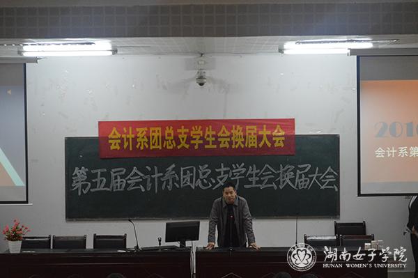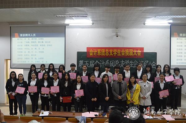 本网讯(会计系 张娟 廖意分)心手相与届届相传,承接使命共担重任。4月5日中午,会计系在笃行楼报告厅举行了第五届团学换届大会。会计系党总支副书记陈铸千、学生干事张娟、团总支书记王梦、辅导员老师、校系主席团以及班级学生代表参加了此次会议。 大会在隆重的国歌声中拉开帷幕。首先是陈铸千致辞,他对上一届团学干部取得的优异成绩表示了充分的肯定的高度的赞扬。他指出,学生干部要树立强烈责任感,在合理规划学习与工作的基础上妥善处理部门事宜,发挥主人翁意识,主动做好各项工作,充分发挥学生干部的纽带作用,做好老师与学生间的交流工作,全心全意服务同学,同时卸任的学生干部仍要在平时的学习生活中起好先锋模范带头作用。 会上,表彰了一批先进集体和个人,包括优秀班集体、优秀干事、优秀班长等共计八十余人,陈铸千、张娟等老师为每一位获奖学生颁发了荣誉证书和奖品,并一一合影留念。 对于班级管理,会计系重视过程督导和奖励考核,坚持召开班长例会,以班级为单位实行周考核和月考核相结合的方式,效果比较显著。在去年的学生管理评比中荣获第一名的好成绩。接着,2014级会本三班董洁作为优秀班长代表发言,她从三个方面介绍了自己两年所积累的管理班级的方法及经验。 最后,新一届的团总支副书记彭雅韵和学生会主席廖意分带领全体团学干部宣誓就职。她们表示要凝聚集体智慧、创新活动模式、铸就活动品牌。彭雅韵最后以一句激昂饱满的口号“会计系,加油!”赢得了在场师生热烈的掌声。新一届的团学干部纷纷表示要加倍重视校园和谐文化的建设,立足同学,始终以服务同学为宗旨,促进同学全面发展,引导同学们不断提高思想觉悟,为构建和谐校园贡献自己的一份力量!