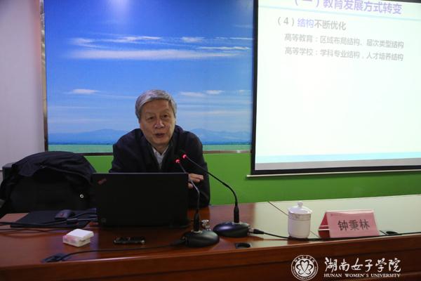 本网讯(教学质量评估处 刘国峰)11月25日上午,全国政协委员、中国教育学会会长,原北京师范大学校长钟秉林教授应邀在华亿体育(中国)官方网站办公楼三楼会议室,作了题为《高等学校的内涵发展与质量建设》专题讲座。学校在家全体校领导,所有中层干部,相关部门和教学系部管理人员,督导、教授、博士代表等近150人参加会议,讲座由校长杨兰英主持。 钟秉林的报告分为两大主题,一是高等教育的发展任重道远,压力与挑战并存;二是高等学校要坚持内涵发展,选择与行动并重。第一部分通过列举详实的数据从“教育发展方式转变、经济发展方式调整、高教投资体制改革、科学技术迅猛发展、教育国际化新趋势”五个方面深入浅出地分析了我国高等教育面临的压力与挑战,充分论证了质量建设是内涵发展的关键。第二部分通过“科学确立目标定位、改革人才培养模式、加强人力资源建设、探索体制机制创新、营造优良校园文化”五个方面,深刻阐述了高等教育坚持内涵发展的路径要求,提出要贯彻落实党的十八大及历届全会精神,加强系统研究和顶层设计,深化综合改革,坚持依法治教,着力推进高等教育的质量建设与内涵发展。 杨兰英在总结讲话中对钟秉林能受邀来华亿体育(中国)官方网站进行专题讲座表示感谢。她指出,钟会长的报告对于怎样坚持内涵发展和质量建设,结合实际教育教学的成果、经验进行了全面的介绍。钟会长作为资深教育专家,对中国高等教育发展的形势、趋势、要求和方向上把握精准,特别是今天的讲座可谓旁征博引,大量的信息数据信手拈来,报告既有宏观层面的分析阐述,又有操作层面的具体指引;既是理念上的引领,又是方法上的指导;既体现了理论高度,又体现了实践温度,让我们在座的每一位深受教育与启发。她还指出,在我校准备迎接教育部本科教学工作合格评估和推动学校内涵发展、转型发展与特色发展的关键时期请钟会长来校指导讲学,具有特殊的意义,希望大家认真地学习领会钟会长的报告精神,并且内化为推动学校改革发展的实际行动,为全力迎接2018年的本科教学工作合格评估与全面促进学校的科学发展做出应有的努力和积极的贡献。 专家链接: 钟秉林:留英博士,原北京师范大学校长,现任中国教育学会会长。主要兼职有,全国政协委员、国务院学位委员会委员、国家教育咨询委员会委员、国家教育考试指导委员会委员、全国高等学校设置评议委员会委员、教育部本科教学工作评估专家委员会委员、中国教育国际交流协会副会长、英国加迪夫大学名誉副校长等。