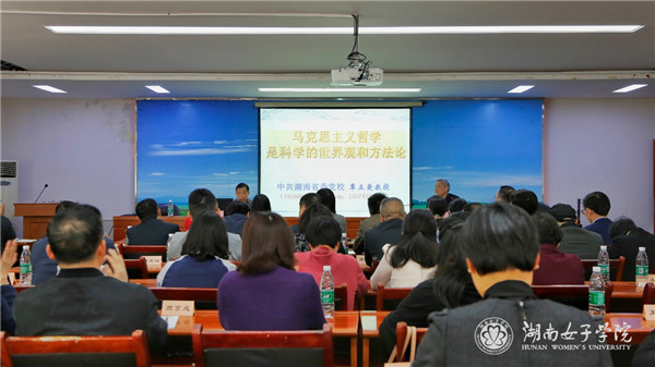 本讯网(招生就业处 周红才)2019年4月30日,湖南省委党校、湖南行政学院覃正爱教授应邀到我校作题为《马克思主义哲学是科学的世界观和方法论》的专题讲座,这也是湖南省高教工委第115期处干班第5次集中学习,讲座由党委副书记吴洛夫主持,近80名学员聆听了此次讲座。