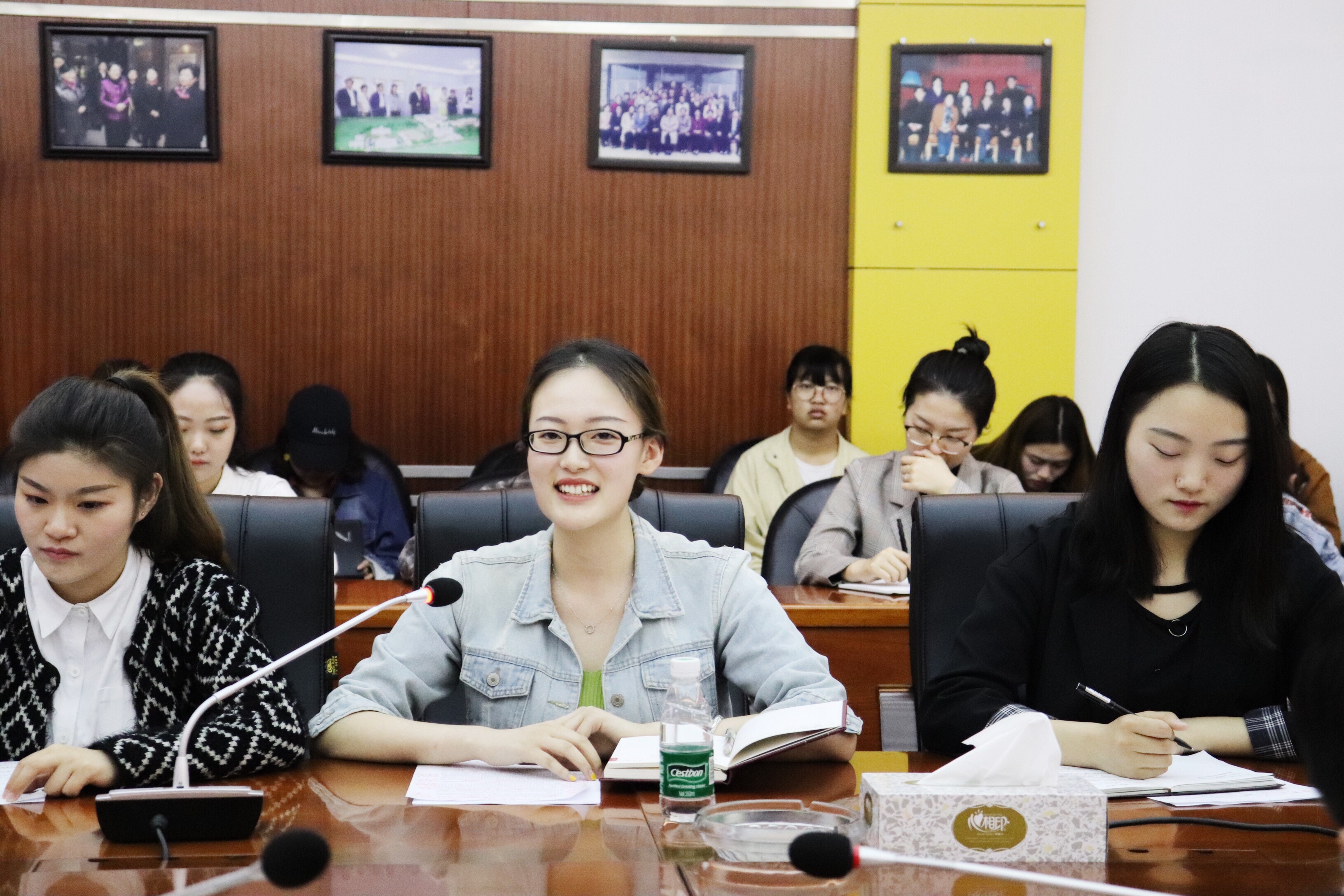 会后,杨兰英、蒋璟萍与学生代表合影留念。