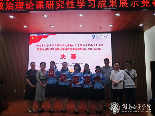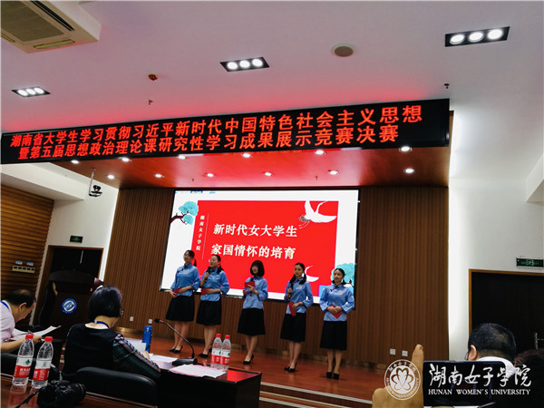 10支队伍展示的主题为“习近平新时代中国特色社会主义思想”。决赛分为学习成果展示和答辩环节。学习成果展示环节主要考察研究性学习小组学习过程及成果。由研究性学习小组各成员运用PPT进行口头陈述。问辩环节则由现场专家就该主题研究性学习过程的相关内容提出1-2个问题,由参赛小组的1-2名学生进行现场回答。比赛中,参赛选手用满怀激情、理性清晰的陈述,机智沉着的答辩,赢得了在场评委及观众热烈的掌声。经过激烈角逐,我校马克思主义学院教师邓灿辉、李会军指导的2016级财务管理专业1班屈芊岑、李静、何艳辉、廖宇婷、何燕琳五人学习小组展示的研究性学习成果“新时代女大学生家国情怀的培育”荣获二等奖。五名同学的展示体现了较好的理论基础、默契的团队合作精神和昂扬向上的精神风貌。