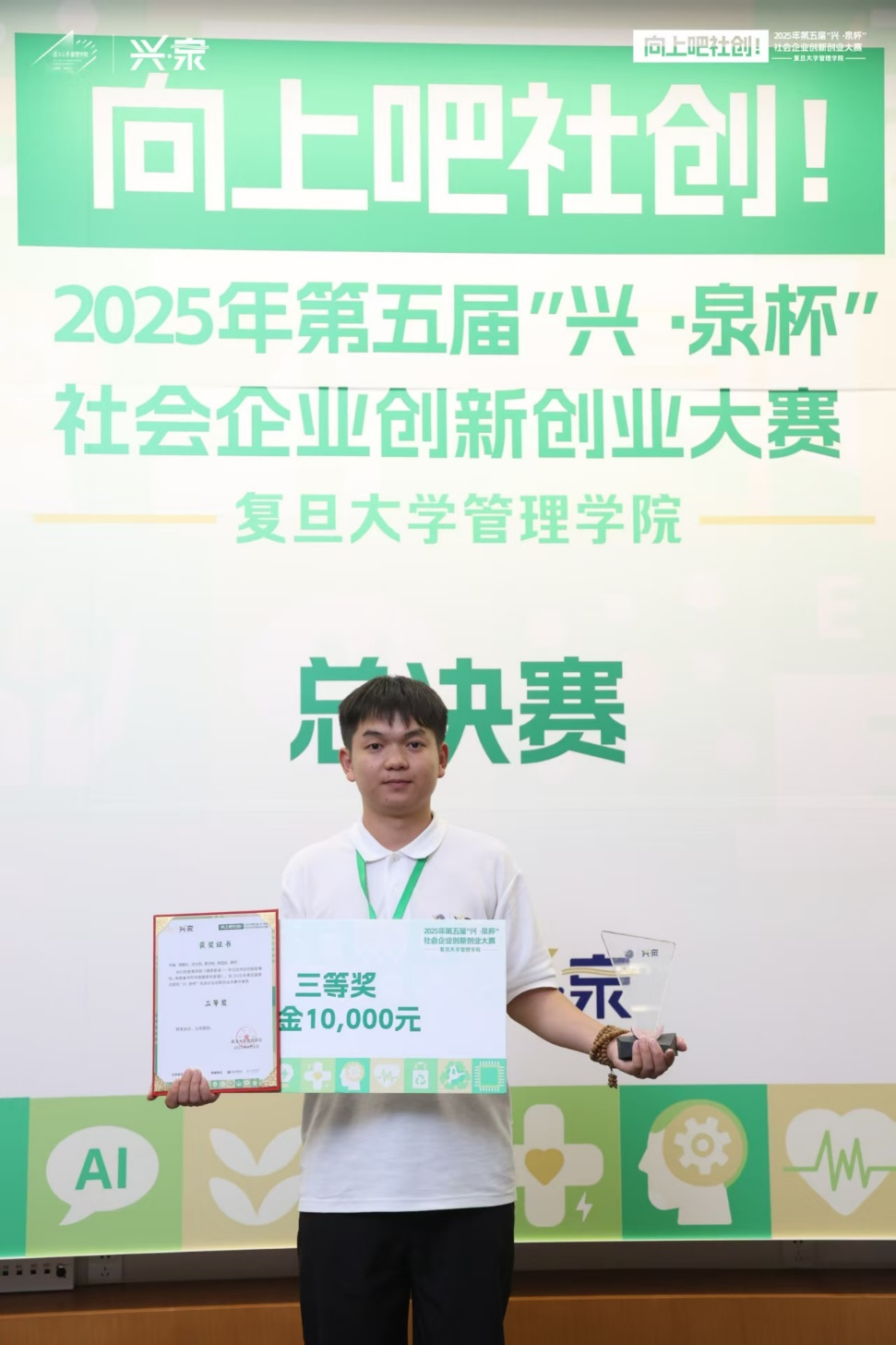 本网讯(产教融合与创新创业教育指导中心 江敏) 8月6日至8日,2025年第五届“兴·泉杯”社会企业创新创业大赛夏令营和总决赛在复旦大学管理学院成功举行。我校参赛项目《擂茶星球——牢记总书记的殷殷嘱托,用青春书写中国擂茶的发展》获得三等奖。这是我校继2024年获中国国际大学生创新大赛银奖后,在社会企业创新创业领域的又一突破。
