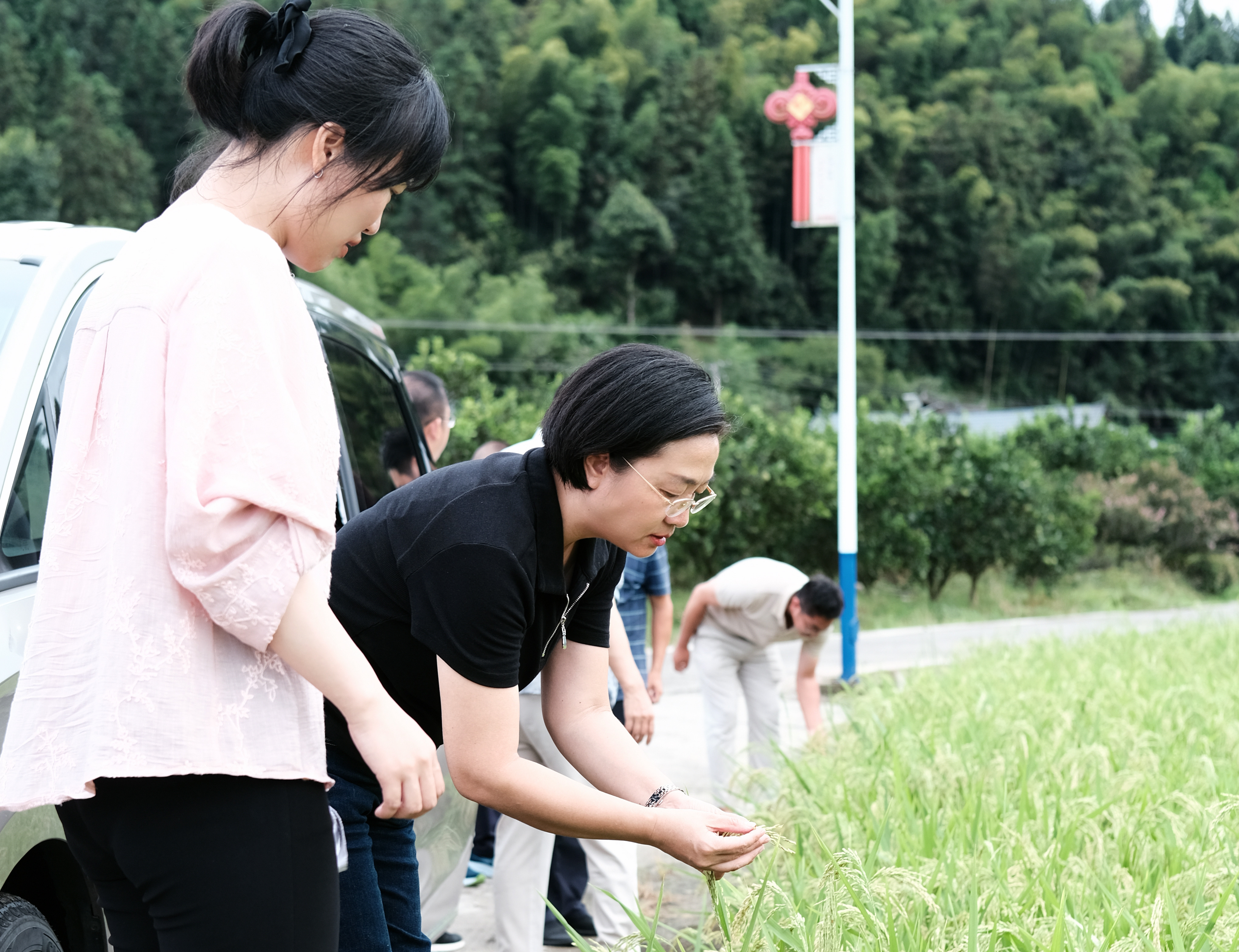 会后,段美娟一行实地考察了熟坪社区茹坪组杂交水稻基地、农业学大寨旧址及便民服务站提质升级项目,并就杂交水稻制种技术与农大专家进行现场交流。