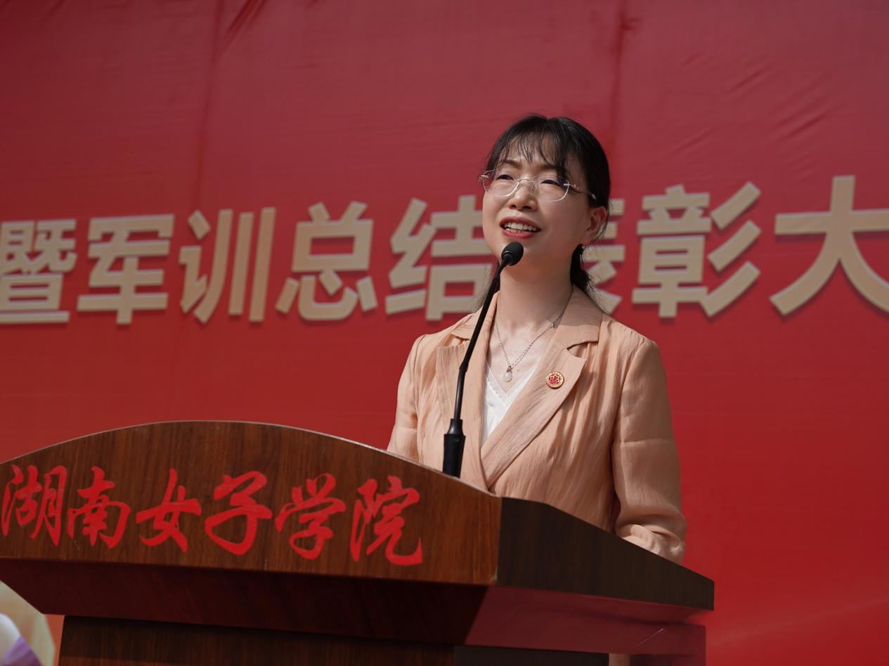 副校长石潇纯宣读2025级新生军训表彰决定,校领导为获奖集体和优秀个人代表颁奖。