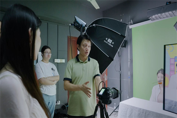 双师共培育能力。构建 “校内骨干 + 企业导师” 双师队伍,现有企业导师 20 余人(含乐田智作影视技术总监、邦克控股 AI 设计专家等),实施 “企业导师进课堂、校内教师进企业” 双向交流机制 —— 如《商业摄影》课程联合湖南保瑞影像企业导师开展 “直播间模拟拍摄” 实战教学,《AI 生成艺术与动态影像》微专业由乐田智作专家与校内教师协同授课,年开展联合教学 30 余课时。