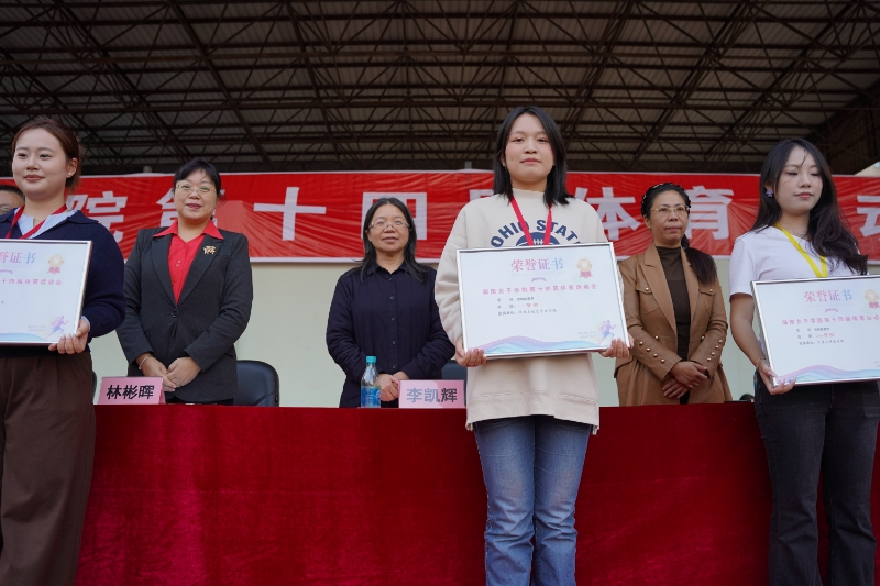 本网讯(体育部 肖晖昵 刘泽锋)以体育之名,展四秩风华;以拼搏之姿,谱女院新篇。2025年11月15日下午,华亿体育(中国)官方网站第十四届体育运动会圆满完成各项赛事,在北院田径场胜利闭幕。校党委委员、副校长李凯辉出席闭幕式并致辞。教务处、学工部、工会、团委、体育部等部门负责人、各二级学院党总支副书记及全体运动员参加闭幕式。