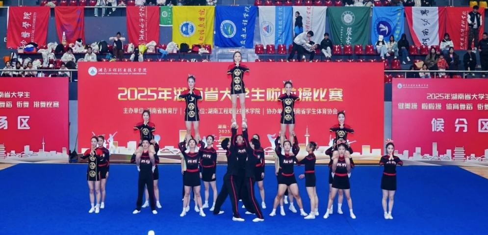 本网讯(体育部 唐悦悦 廖虎武) 近日,2025年湖南省大学生健美操、啦啦操、体育舞蹈、街舞、排舞比赛圆满落幕。我校学子以精准的技术动作、默契的团队协作和昂扬的青春斗志,在多个项目中强势突围。啦啦操项目斩获四金三银,其中集体自选花球、超级A规定花球、集体技巧、全女技巧四项勇夺桂冠,小团体技巧、双人花球、双人爵士分获亚军;一举斩获啦啦操项目学院甲组团体第一、全省高校团体总分第一名的好成绩。健美操项目中,女子有氧踏板力压群雄摘得金牌;街舞项目Street Jazz获得第四名。以五金三银、一项第四名的亮眼战绩谱写校史新篇章,实现了我校参加该项体育赛事中的突破性跨越!为学校40周年校庆增光添彩!