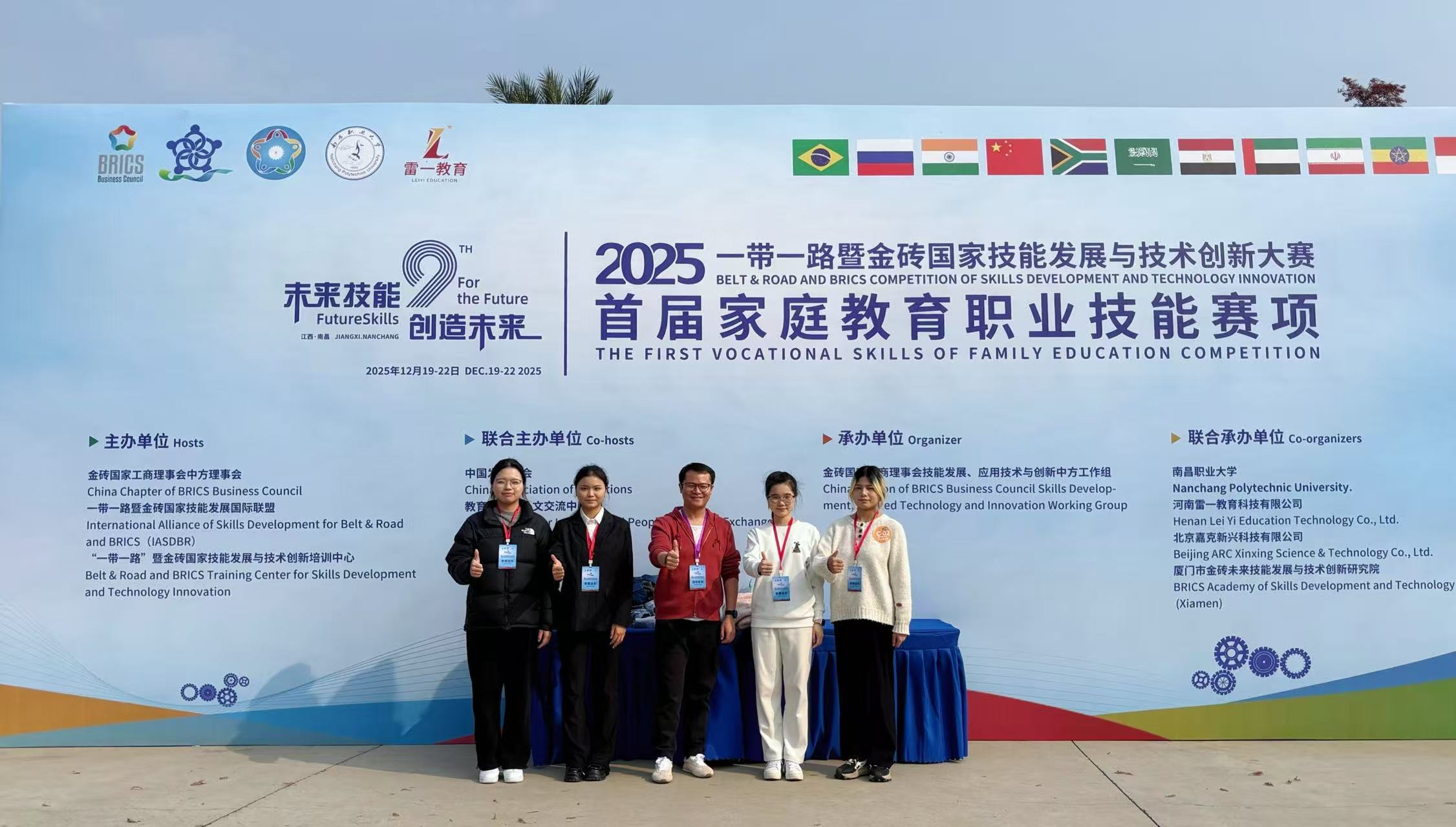 本网讯(社会发展学院 成雁瑛)近日,2025一带一路暨金砖国家技能发展与技术创新大赛——首届家庭教育职业技能赛项总决赛在南昌圆满落幕。华亿体育(中国)官方网站社会发展学院参赛团队(选手:23级学前教育专业邵楠、廖桂湘、邱文洁、吴馨月;指导教师:姚云龙、成雁瑛)凭借扎实的专业功底、出色的现场表现和稳定的团队发挥,最终荣获高校组银奖,同时获得优秀指导教师奖和优秀组织奖,为学校赢得了荣誉。