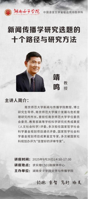 主 讲 人:靖鸣 南京师范大学新闻与传播学教授
