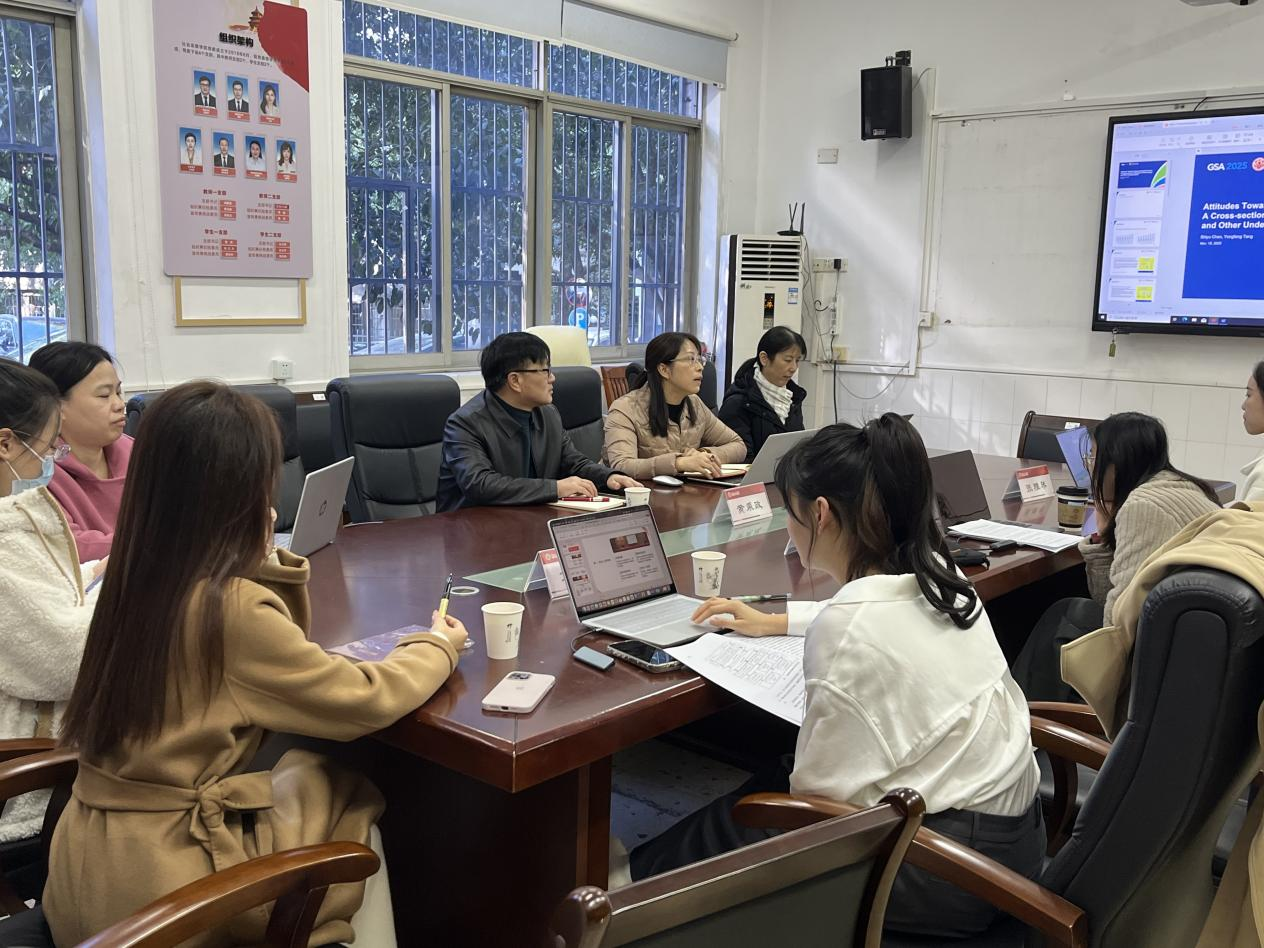 本网讯(社会发展学院 何盈盈)2025年11月21日下午,社会发展学院“众心圆・知行”学术论坛(第二期)顺利举行。此次会议由刘海云副院长主持,学院党委书记黄乘政、骨干教师及新进博士共同参会。