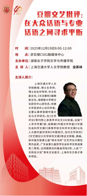 讲座主题:豆瓣文艺批评:在大众话语与专业话语之间寻求平衡